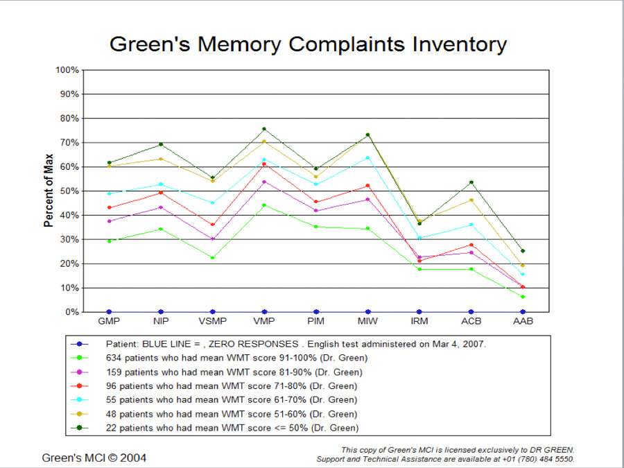 - The MCI lets you compare the person’s self-rated memory complaints with those from comparison groups, both by diagnostic group and also by WMT effort level.